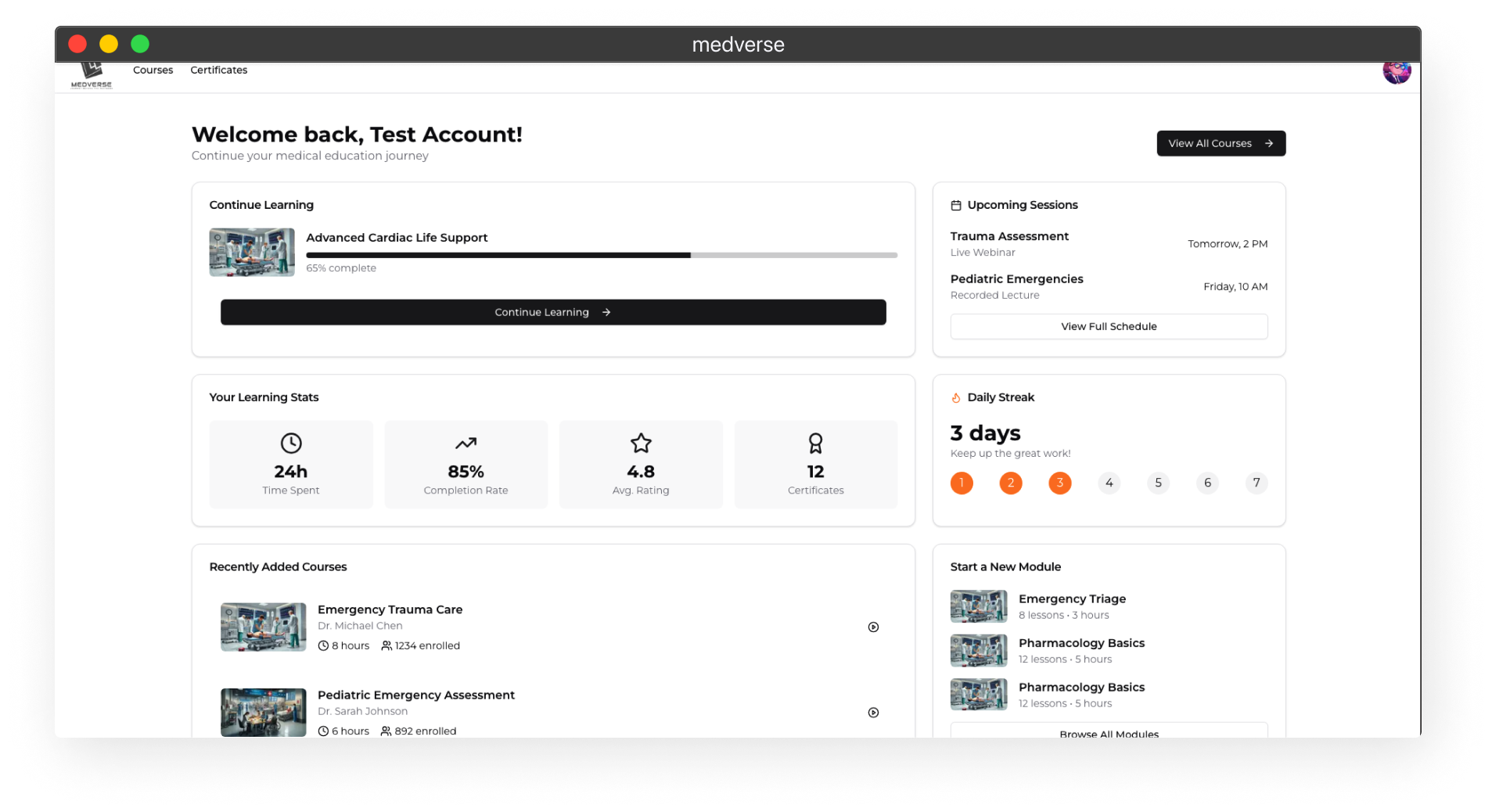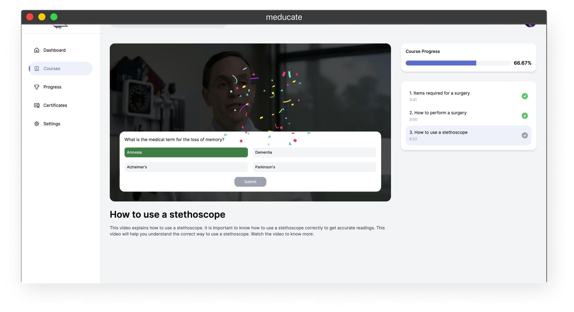 An online ed tech platform specially for medical professionals, with certification and user scores.