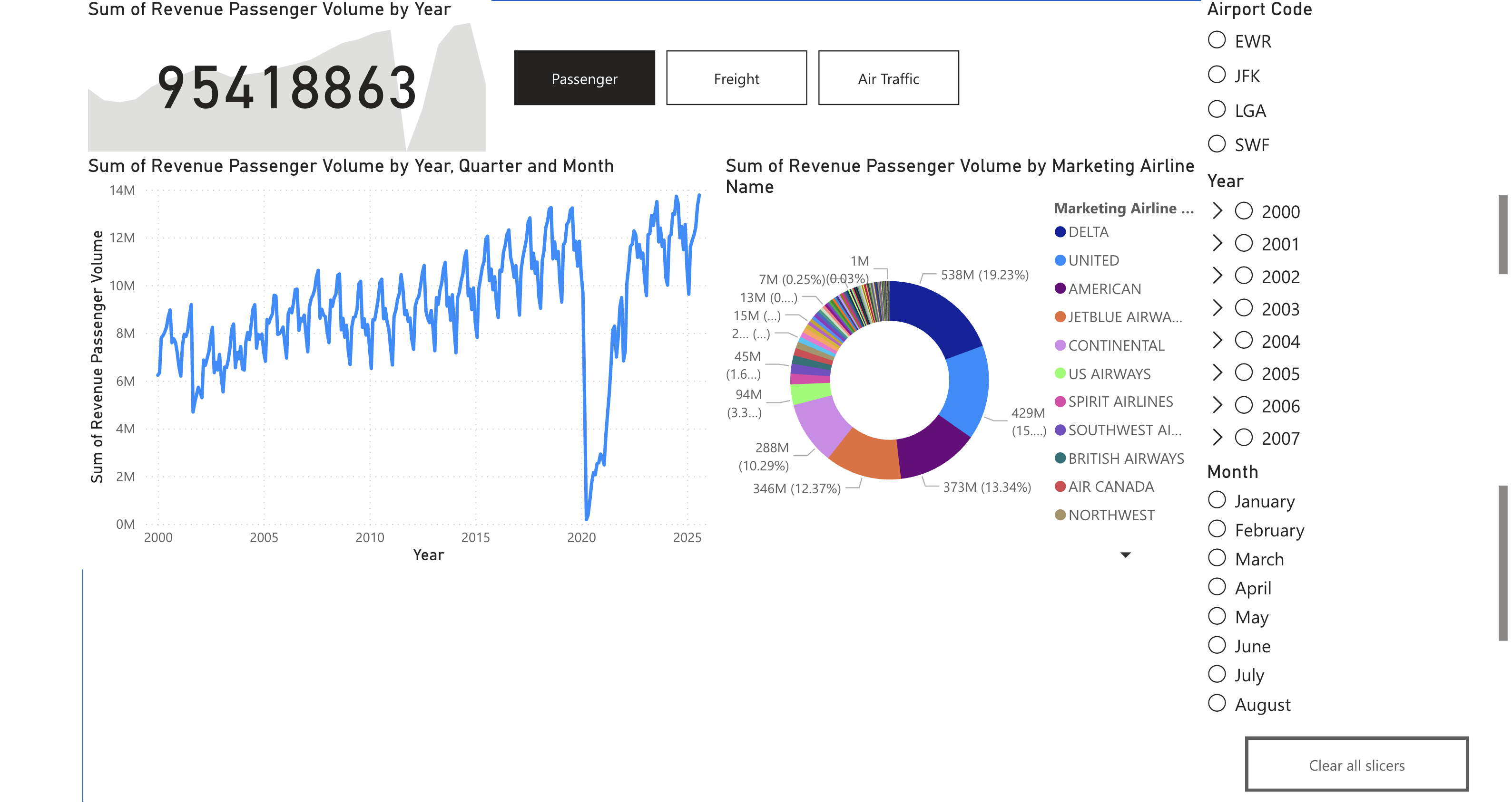 An interactive Power BI dashboard for visualizing airport traffic data in New York City.