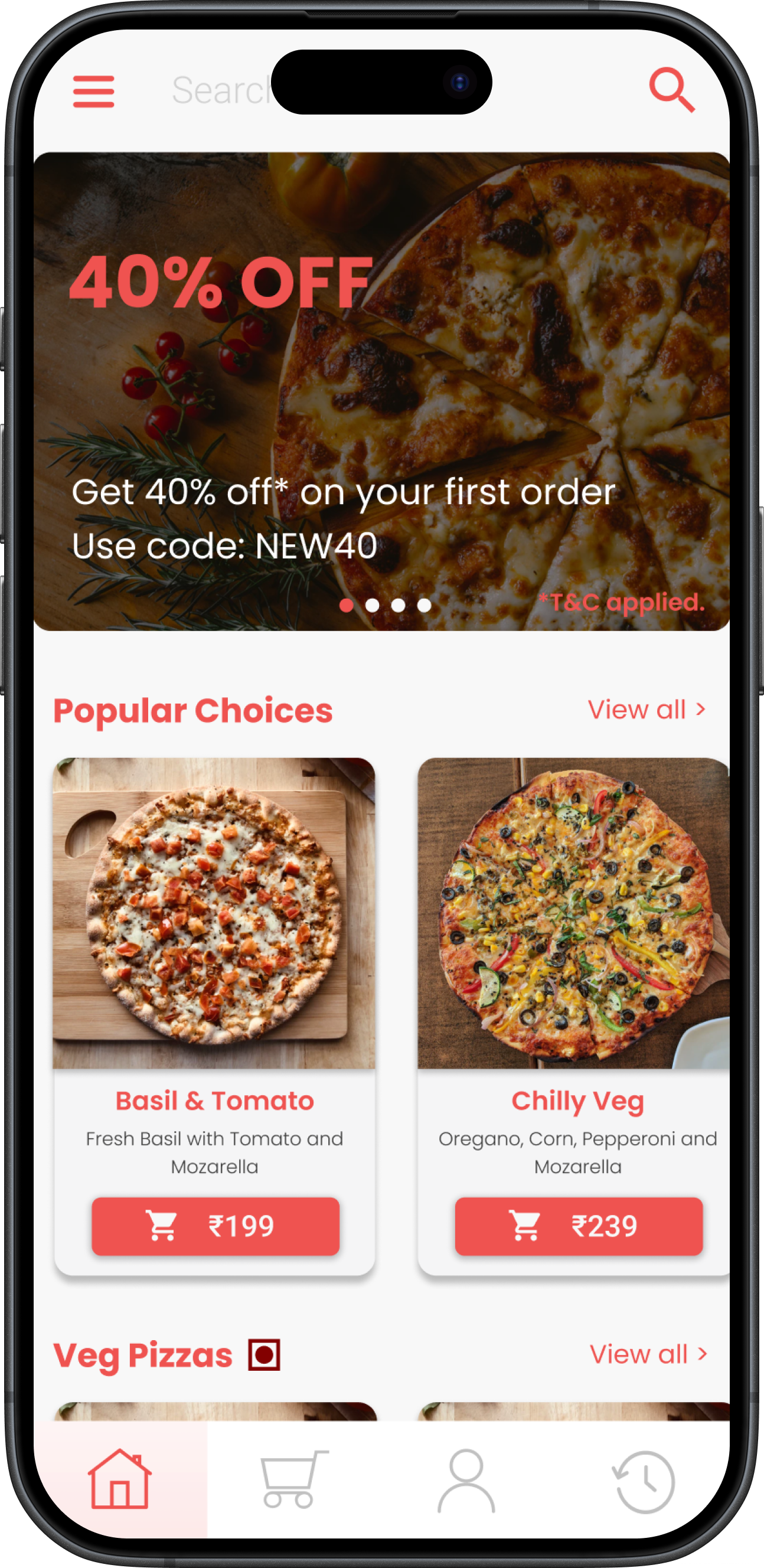 A mobile app for ordering pizza.