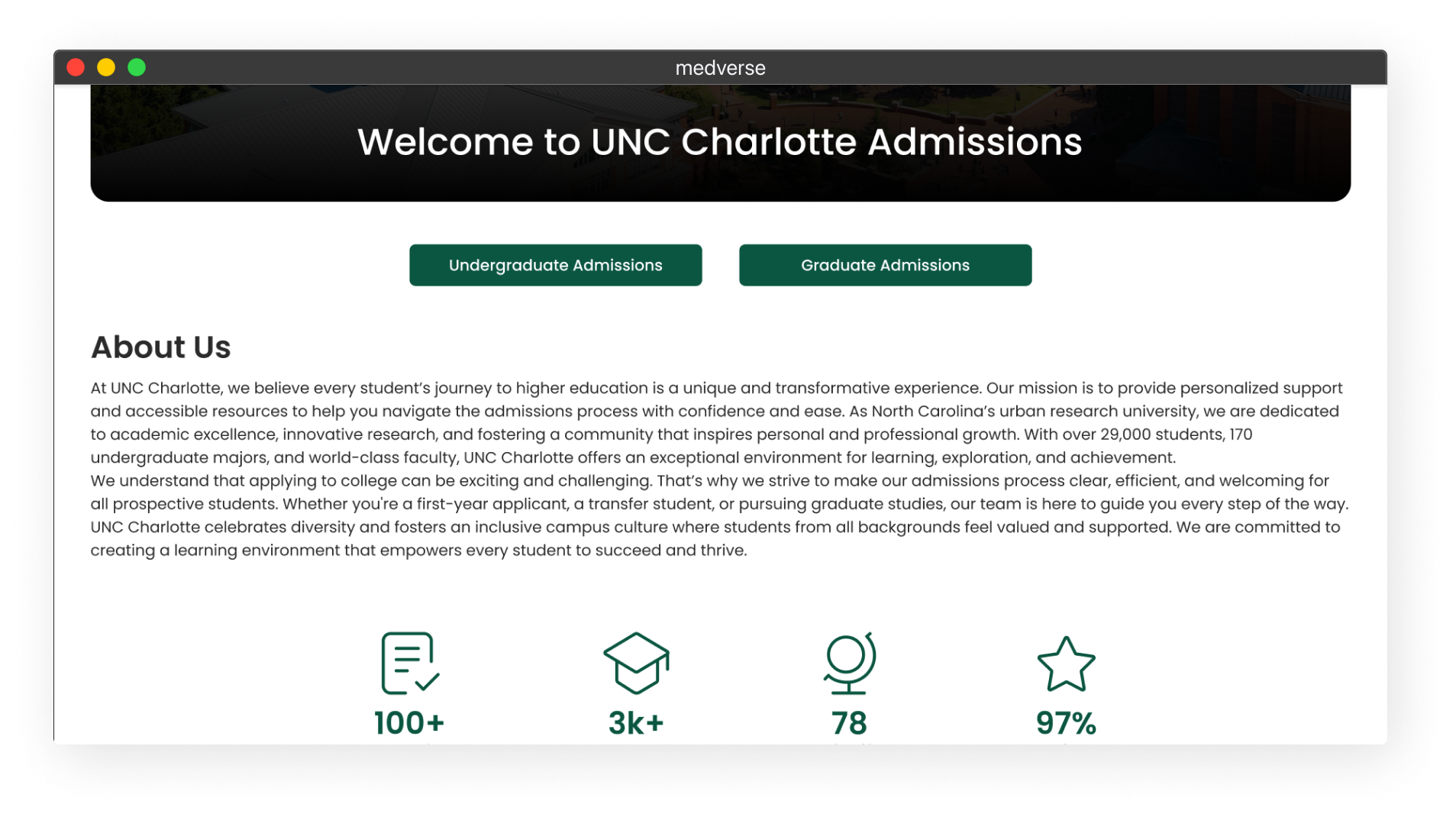 Revamping the design and functionality of the UNCC admission and financial aid website.