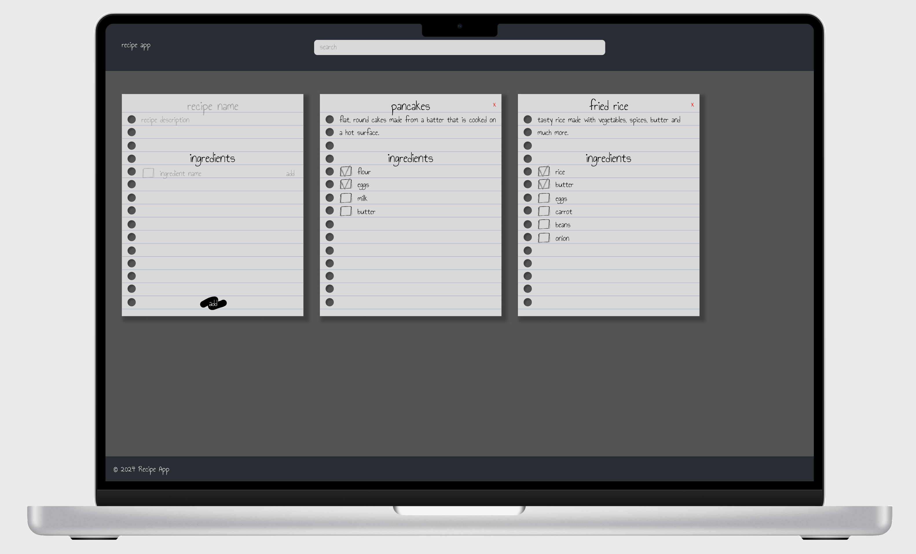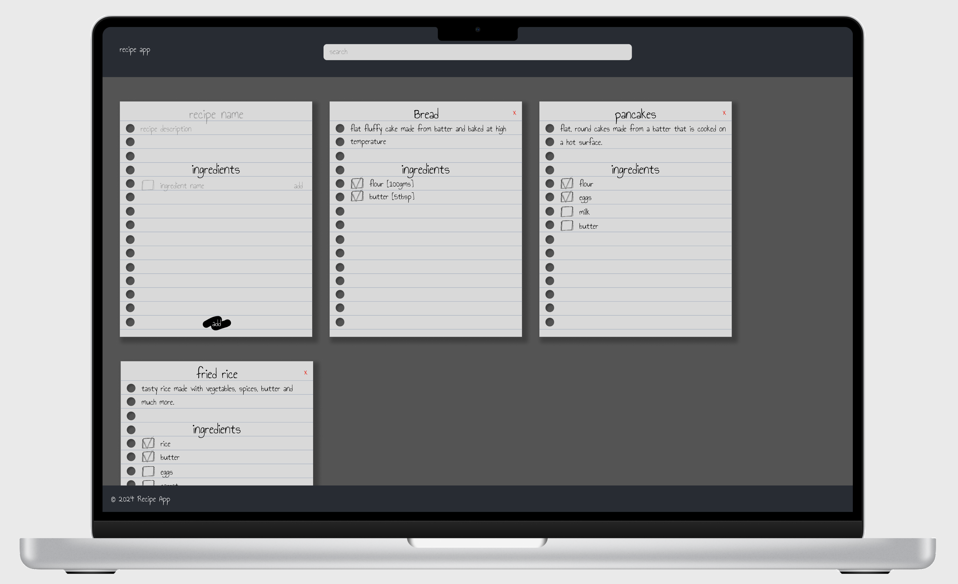 Recipe App is a simple recipe application that allows users to create, edit, and delete recipes. The app is designed to be user-friendly and intuitive, with a clean and minimalistic interface. Users can organize their recipes by category and easily search for specific recipes using the search bar and filter by ingredients.